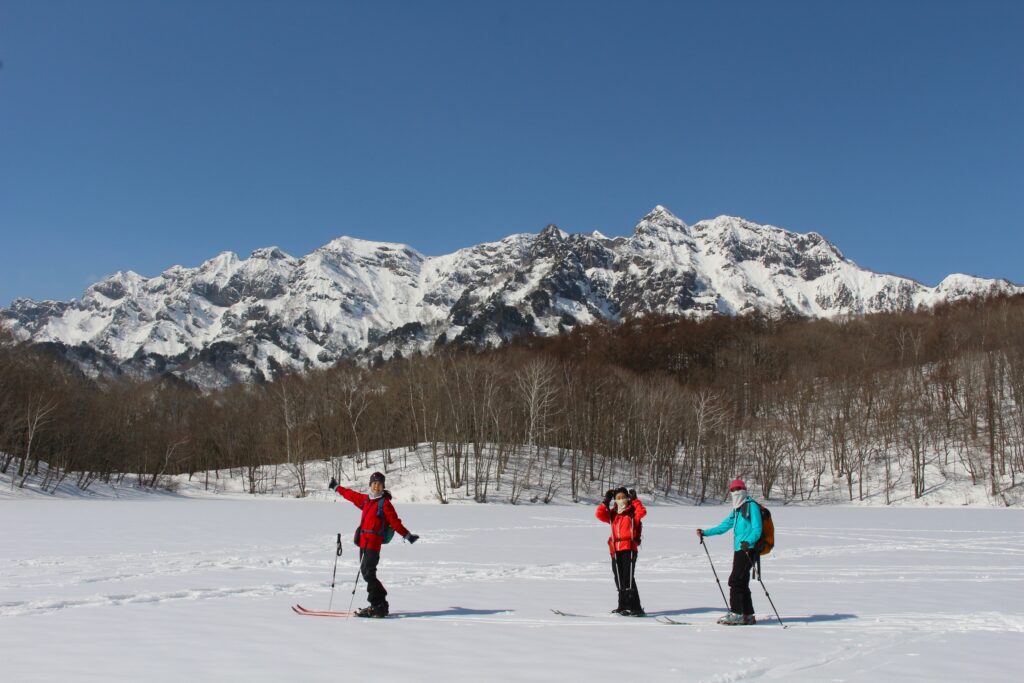 ツアー:戸隠高原エリアで、スキー、スノーシュー、どちらもOKです。初心者から上級者まで、コースをご相談ください。時間帯は上記のレッスンとほぼ同じです。