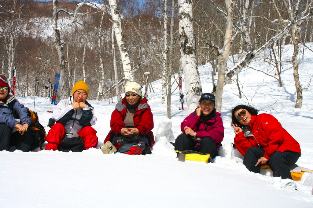 両日とも、明るいミズナラやブナ、白樺などバラエティーに富んだ林を縫って、自然の中を標高差1000m近くも、景色を楽しみながらゆっくり長~く滑ります。