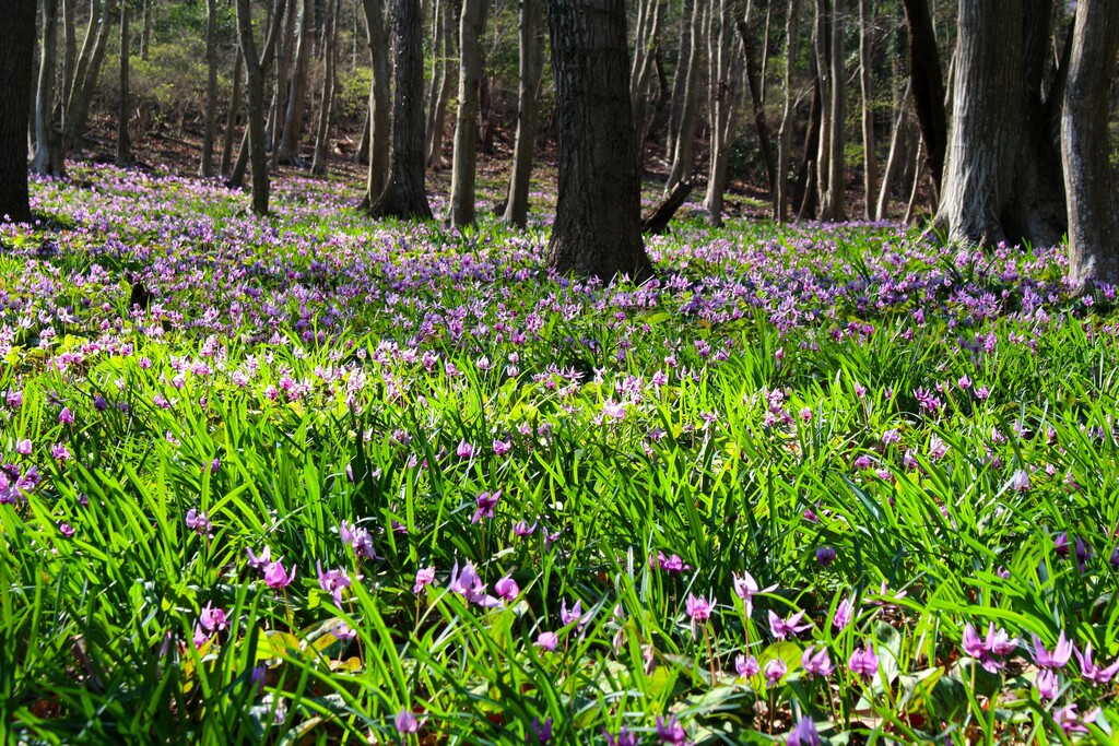 みかも山公園よりさらに大きな、15万株のカタクリ群生地が見事です。