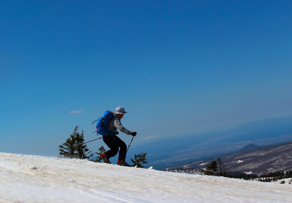 明るい春の陽光の下、東北らしいゆったりとした、スケ-ルの大きな自然と、ロングな滑りが楽しめるスキ-ツア-を、心ゆくまで満喫します。